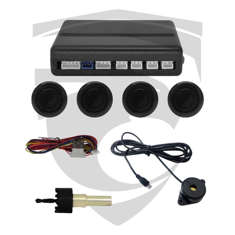 Sensor de Estacionamento 4 Pontos Sonoro Frontal Dianteiro Preto Brilhoso com Cabo Longo 7m Orbe