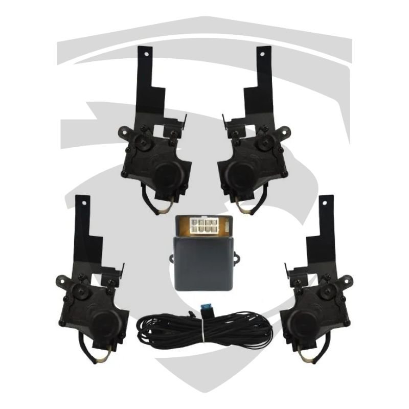 - Permite ao transmissor do sistema de alarme o fechamento e o destrave das portas remotamente ao armar ou desarmar-se;